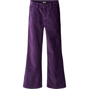 Lila byxor i mjuk bomullssammet med en trumpetformad silhuett. Byxorna har fickor fram och bak. Midjan har en knapp- och dragkedjestängning samt en invändig justerbar resår för en bra passform.