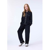 Mjuka svarta byxor i viskos med en lös passform. Dessa byxor har en justerbar resår i midjan och vita kanter vid byxbenen. Kombinera dem med den matchande skjortan för en komplett uppsättning.