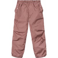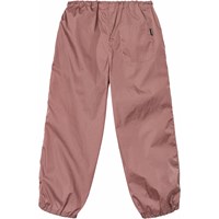 Mörkrosa byxor gjorda i nylon. Dessa byxor har gummiband i midjan, samt elastik vid bensluten, vilket ger dem en snygg och sportig look. De har också sidofickor med knappstängning och en enkel bakficka.