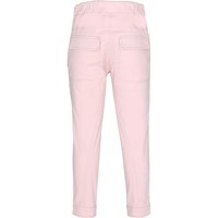 Tuffa, ljusrosa byxor med elastisk, reglerbar midja. Byxorna har fickor i sidan och bak samt dekorativa sömmar olika ställen på byxorna. Observera, att storlekarna till och med 128 har tryckknapp, varav storlekarna från 134 och upp efter har vanlig jeansknapp.