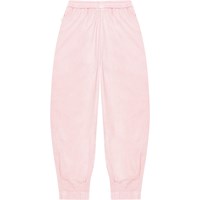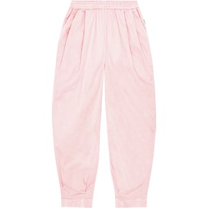 Rosa byxor i bomull. Byxorna har gummiband i midjan som gör dem enkla att ta av och på och ett veck framtill som ger dem volym. Byxorna har fickor i sidosömmarna och ett insytt veck nertill som också ger volym.