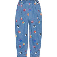 Mintgröna byxor i bomull. Byxorna har gummiband i midjan som gör dem enkla att ta av och på och ett veck framtill som ger dem volym. Byxorna har fickor i sidosömmarna och ett insytt veck nertill som också ger volym.