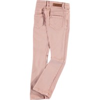 Aliza är ett par ljusrosa jeans med en tvättad look och lätt vidd och svaj i benen. Byxorna har fickor fram och bak. Var uppmärksam på att storlekarna upp till och med 134 har tryckknapp och inte vanlig jeansknapp.