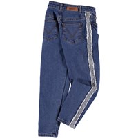 Allis är ett par vintage inspirerade blå jeans med en lös passform och en cool ljus franskant i sidorna. Byxorna har fickor fram och bak. Var uppmärksam på att storlekarna upp till och med 134 har tryckknapp och inte vanlig jeansknapp.