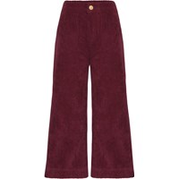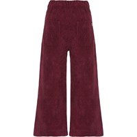 Alyna är en mörkröd sammetsbyxa med stora påsydda fickor.