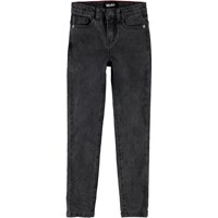 Angelica är ett par extra smala jeans i en svart tvättad färg. Byxorna har fram- och bakfickor. Observera att storlekar upp till och med 134 har en tryckknapp och inte en vanlig denim-knapp.