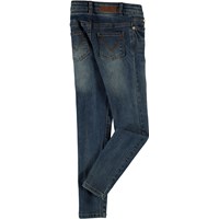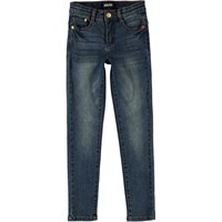 Angelica är en blå jeansbyxa med en extra smal passform. Jeansen har en lätt tvättad look. Byxorna har fickor fram och bak. Observera att storlekar till och med 134 har en tryckknapp och ingen vanlig jeansknapp.