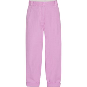 Anika är ett par rosa chinos i 100% bomull. Byorna har veckframtill, fickor i sidorna och en enkel bakficka. Anika har bälteshällor och stängs med knapp och dragkedja. Till de varmare dagarna, ser byxorna också coola ut med uppvikta ben.