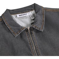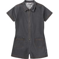 Kortärmad overall i mjuk, mörkgrå denim med dragkedja framtill och kontrastsömmar. Overall har en klassisk krage och två påsydda fickor, vilket ger en cool och avslappnad look.