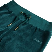 Gröna velourbyxor i en mjuk bomullsblandning med en trumpetformad silhuett. Midjan har en fast resår med dragsko som säkerställer en bekväm passform för alla barn. Kombinera byxorna med den matchande koftan för en komplett uppsättning.