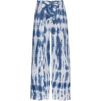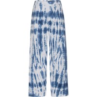 Aretha är ett par omlottbyxor i blå tie-dye, som är luftiga och perfekta till varma dagar och turer till stranden. Byxorna har knytband framtill och gummiband i midjan.