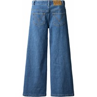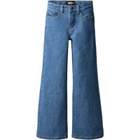 Blå jeans i ekologisk bomull med stretch, 5 fickor, vida ben och en normal passform. Midjebandet kan justeras med en invändig elastisk för optimal passform för alla barn. Storlekarna 92-134 har en tryckknapp för enkel på- och avtagning, medan storlekarna 140-176 har en vanlig jeansknapp.