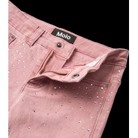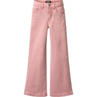 Rosa stretchiga bomullsjeans med strass. Jeansen har en klassisk 5-ficksdesign, en elegant utsvängd form och en normal passform. Midjan kan enkelt justeras med en invändig resår, så att byxorna passar perfekt på alla barn. Storlekar 92-134 har en praktisk tryckknapp, medan storlekar 140-176 är utrustade med en traditionell jeansknapp.