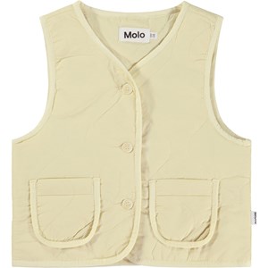 Ljusgul quiltad väst med kantband. Denna väst är tillverkad i 100% nylon, har V-ringad hals, knappar framtill, svarta kantband, påsydda fickor med svart kantband och en normal passform. Matcha ev. denna väst med kjolen, Bette, i samma färg och material, för en cool look.