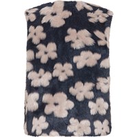 Svart väst i fuskpäls med beige blommor. Denna väst är tillverkad i 100% polyester, har V-ringad hals, beige blommor och en normal passform. Perfekt till de kallare dagarna. Använd den utanpå en skjorta, långärmad t-shirt eller en klänning, för en cool look.