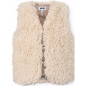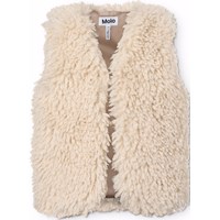 Krämfärgad fluffig väst i teddymaterial av återvunnen polyester. Västen stängs med en liten hake som fulländar den mjuka och mysiga looken.
