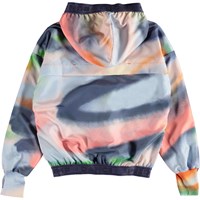 Ophelia är en luftig multifärgad sportjacka med spraymönster. Jackan har dragkedja , luva och blått kantband med text. Jackan är en del av Molo´s sportkollektion som binder samman sport och mode. Kombinera Ophelia med en av de matchande plaggen från Molo´s sportkollektion för en komplett och cool look. Molo´s sportkollektion är tillverkad med en unik high-performance teknologi kallad HeiQ Smart Temp, som stödjer kroppens naturliga nerkylning. Kylfunktionen aktiveras när du är varm och svettig och deaktiveras när kroppen är nerkyld. HeiQ Smart Temp säkrar optimal komfort och prestanda. Testat oberoende som säkerhet för huden.