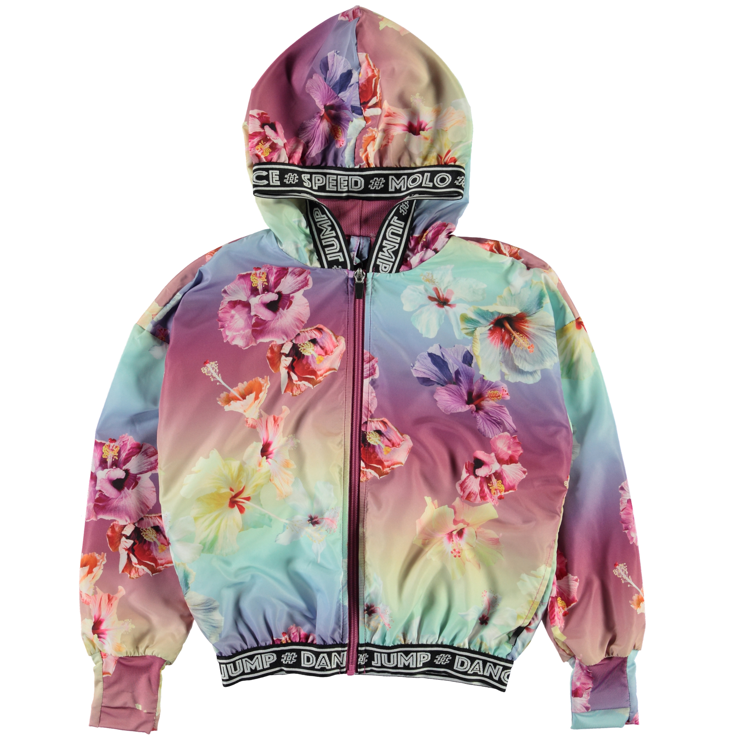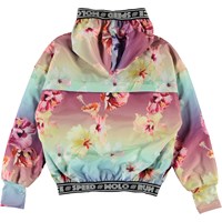 Ophelia är en luftig sportsjacka med blommigt tryck. Jackan har dragkedja, huva och kantband med text. Jackan är en del av Molo's nya sportskollektion, som kombinerar mode och sport. Kombinera Ophelia med en av de matchande styles fra Molo's sportskollektion för en komplett och cool look. Molo’s sportskollektion är tillverkad med en unik högpresterande teknologi som heter HeiQ Smart Temp, som stöder kroppens naturliga avkylning. Kylfunktionen aktiveras när du är varm och svettig. Kylfunktionen inaktiveras när kroppen är avkyld. HeiQ Smart Temp garanterar optimal komfort och prestanda. Testad oberoende som säkert för huden.
