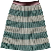 Bailini-kjolen är en av Molos favoriter och passar både till fester, men också till vardags med en avslappnad blus. Kjolen är veckad med guld- och silverband tvärs över. Bailini har också en randig elastisk midja.