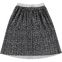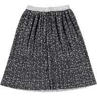Kjolen Bailini är en av Molos favoriter och fungerar utmärkt till fest, men också till vardags med en avslappnad blus. Kjolen är gråskimrande med stjärnor, samt plisserad med en elastisk kant som har fina ränder.