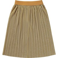 Metallisk och plisserad guldkjol i midilängd. Denna kjol är tillverkad i en polyamidblanding, har gummiband i midjan vilket gör den enkel att ta av och på, samt en normal passform. Kjolen skiner som det renaste guld och är perfekt till både vardag och fest!