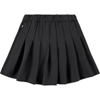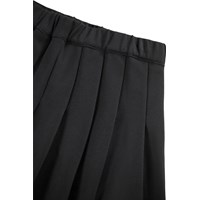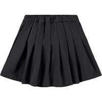 Svart viskoskjol med en elastisk midja för att göra den lätt att ta på och bekväm att bära. Den har en cirkulär skärning och paneler runt om, vilket gör att den faller snyggt.
