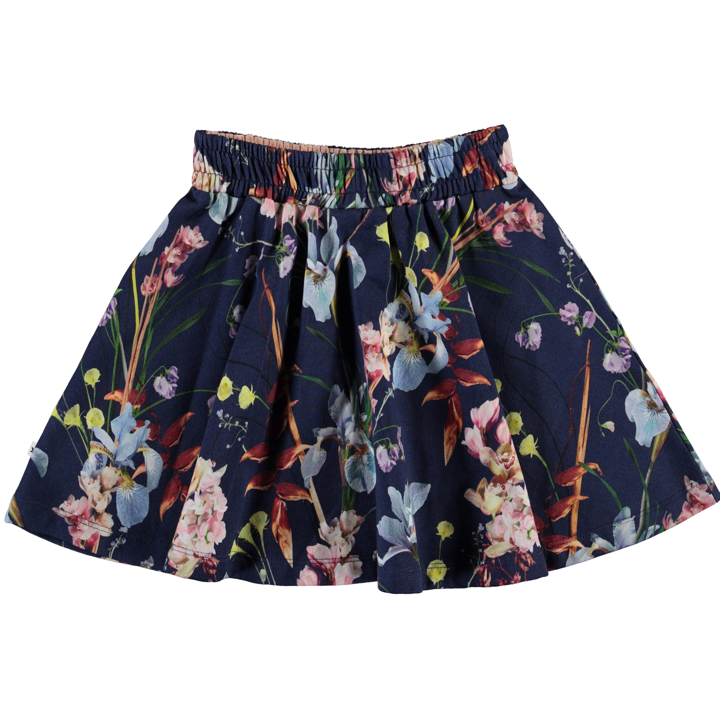Barbera är en blå kjol med ett snyggt blomsterprint. Kjolen har en elastisk midja, som ger en behaglig passform.