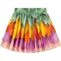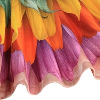 Kjol i mjuk, ekologisk bomull med en elastisk midja för enkel påklädning och optimal komfort. Den cirkulära skärningen faller vackert mitt på låret och ger ett elegant utseende. Kjolen har ett vackert mönster av färgglada blomblad, vilket ger ett fräscht och livligt uttryck.