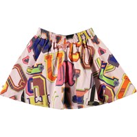 Barbera är rosa kjol med grafiska bokstäver och tryck av baseball bollar. Kjolen har resår i midjan, som ger en skön passform.