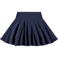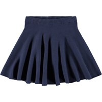 Kort mörkblå stickad kjol i ekologisk bomull. Kjolen har veck som ger den en vacker flytande effekt. Den ribbade kanten med resår i midjan gör den enkel att ta på sig. Kombinera den med den matchande toppen för en komplett look.