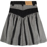 Vacker tvåfärgad jeanskjol i ekologisk bomull med en unik design. Kjolen har en panel framtill och fina rynkade detaljer som ger en spännande och smickrande passform. Den har tre praktiska fickor, tryckknappar finns upp till storlek 140, därefter knäpps den med klassiska jeansknappar, och en justerbar midja för optimal komfort.