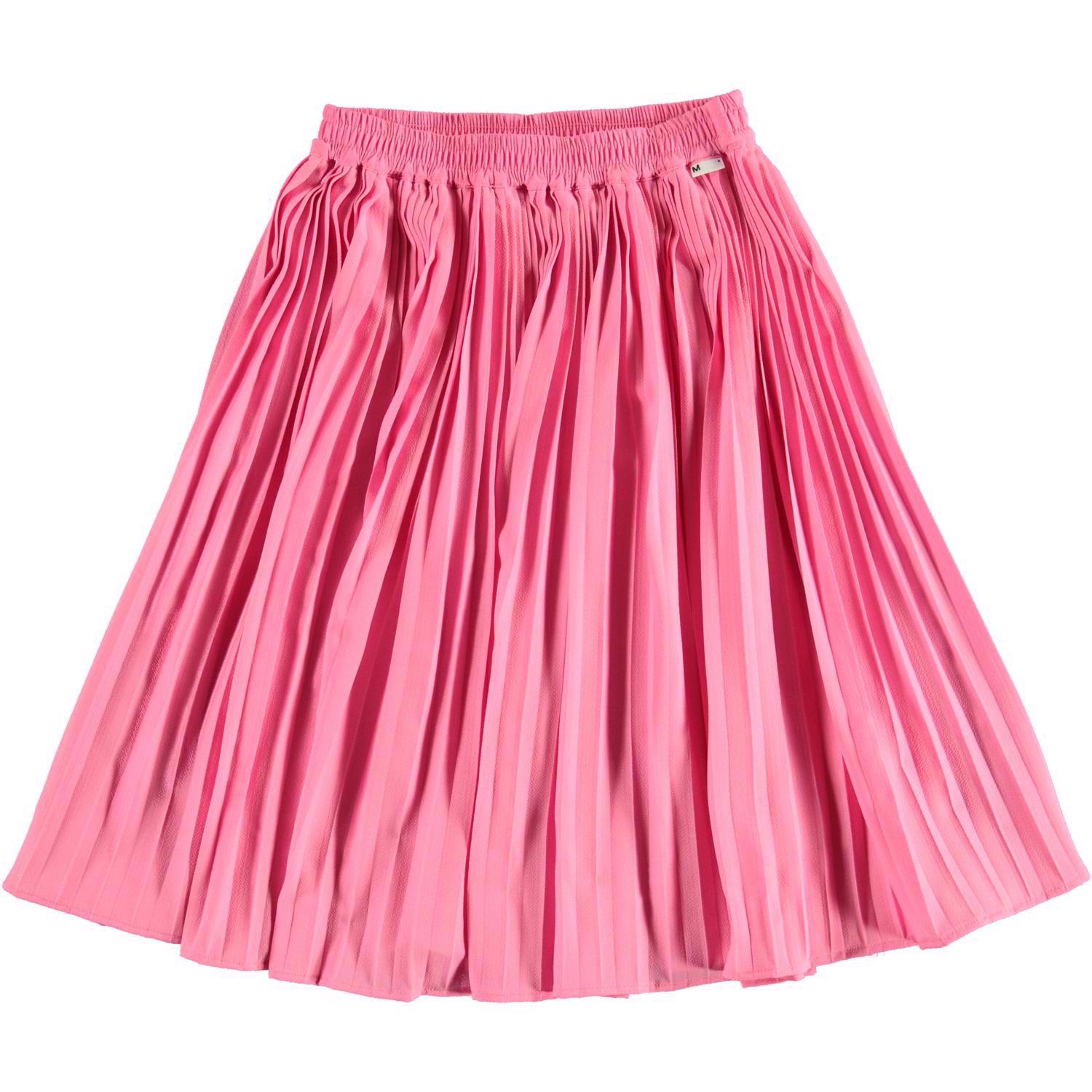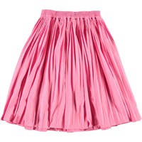 Becky är en plisserad kjol i rosa med gummiband i midjan, Kjolen är lätt, luftig och faller fint.