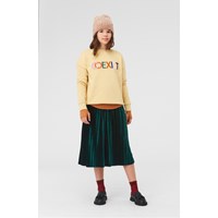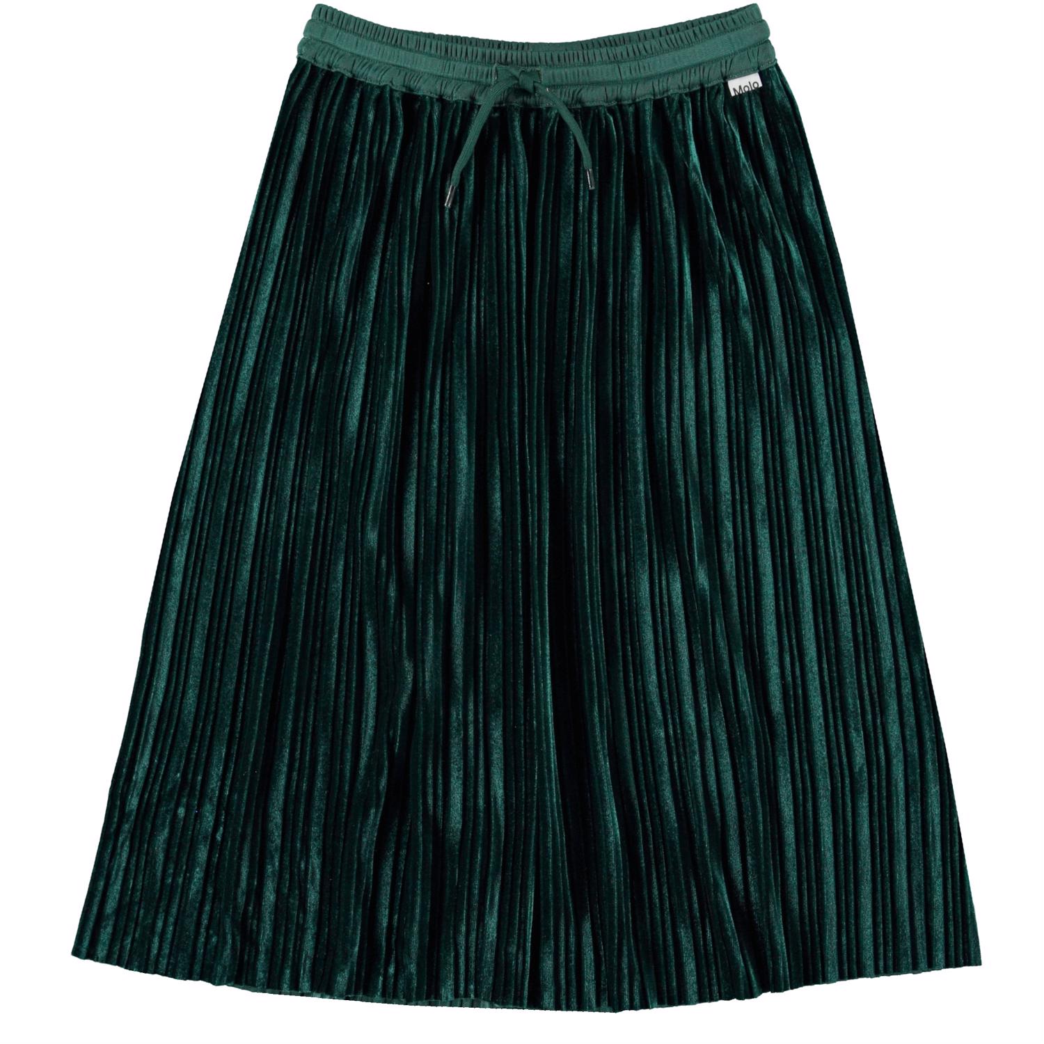 Becky är en lång plisserad grön kjol. Kjolen har en elastisk midja med knytband, vilket gör kjolen väldigt bekväm att bära.