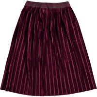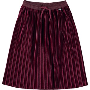 Becky är en mörkröd plisserad kjol med bra längd. Kjolen har gummiband i midjan, vilket gör det väldigt skön att ha på.