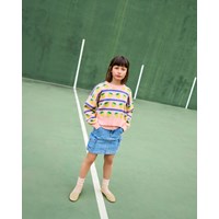 Ljusblå jeanskjol i ekologisk bomull. Kjolen är knälång, har en normal passform och midjan är utrustad med bältesöglor, knapp och dragkedja, samt invändigt gummiband i midjan som säkerställer rätt passform för alla barn. Kjolen har fram- och bakfickor samt stora cargofickor på sidorna.