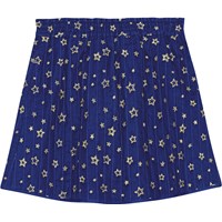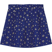 Marinblå quiltad kjol i mjuk bomull, som når till mitten av låret. Kjolen har en gummiband i midjan, vilket gör den skön och enkel att ta på. Den är prydd med små broderade guldstjärnor, vilket ger kjolen en exklusiv look. Matcha kjolen med en matchande väst för att skapa ett exklusiv set.