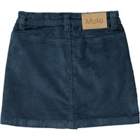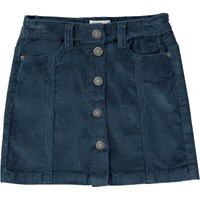 Mörkblå kort kjol i räfflad manchester. Denna kjol är tillverkad i 100% bomull, har fickor i sidan, guldfärgade knappar framtill, bälteshällor och normal passform. Kjolens midja kan justeras med ett invändigt gummiband så den passar perfekt till alla barn. Storlek 92-134 har tryckknapp så att kjolen är enkel att ta av och på - storlek 140-176 har vanlig jeansknapp.