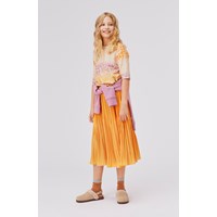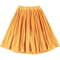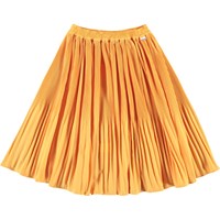 Bertha är en orange plisserad kjol med gummiband i midjan som faller fint.