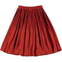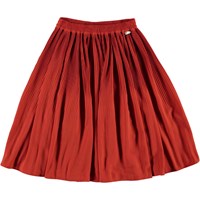 Bertha är en röd småplisserad kjol med gummiband i midjan.
