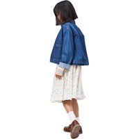 Off-white plisserad kjol med små, färgglada hjärtan. Kjolen har ett tungt och vackert fall, slutar precis ovanför knät och har en elastisk midja, vilket gör den både bekväm att bära och lätt att ta på och av.