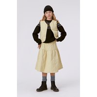 Ljusgul quiltad kjol. Denna kjol är tillverkad i 100% nylon och har ett fint quiltat mönster. Kjolen är vadderad så att den är perfekt till de lite kallare dagarna, med ett par varma strumpbyxor under. Kjolen har gummiband i midjan och en normal passform. Matcha den ev. med västen, Harriet, i samma färg och material, för ett fint set.
