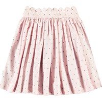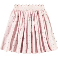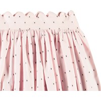 Rosa kjol i ekologisk bomull. Kjolen har en fast midja med dragkedja och rundad skärning som samlas samlas runt midjan. Kjolen har delikat vågeffekt längst upp på midjan och fint vävda svarta prickar i tyget. Kombinera kjolen med en matchande skjorta för en komplett uppsättning.