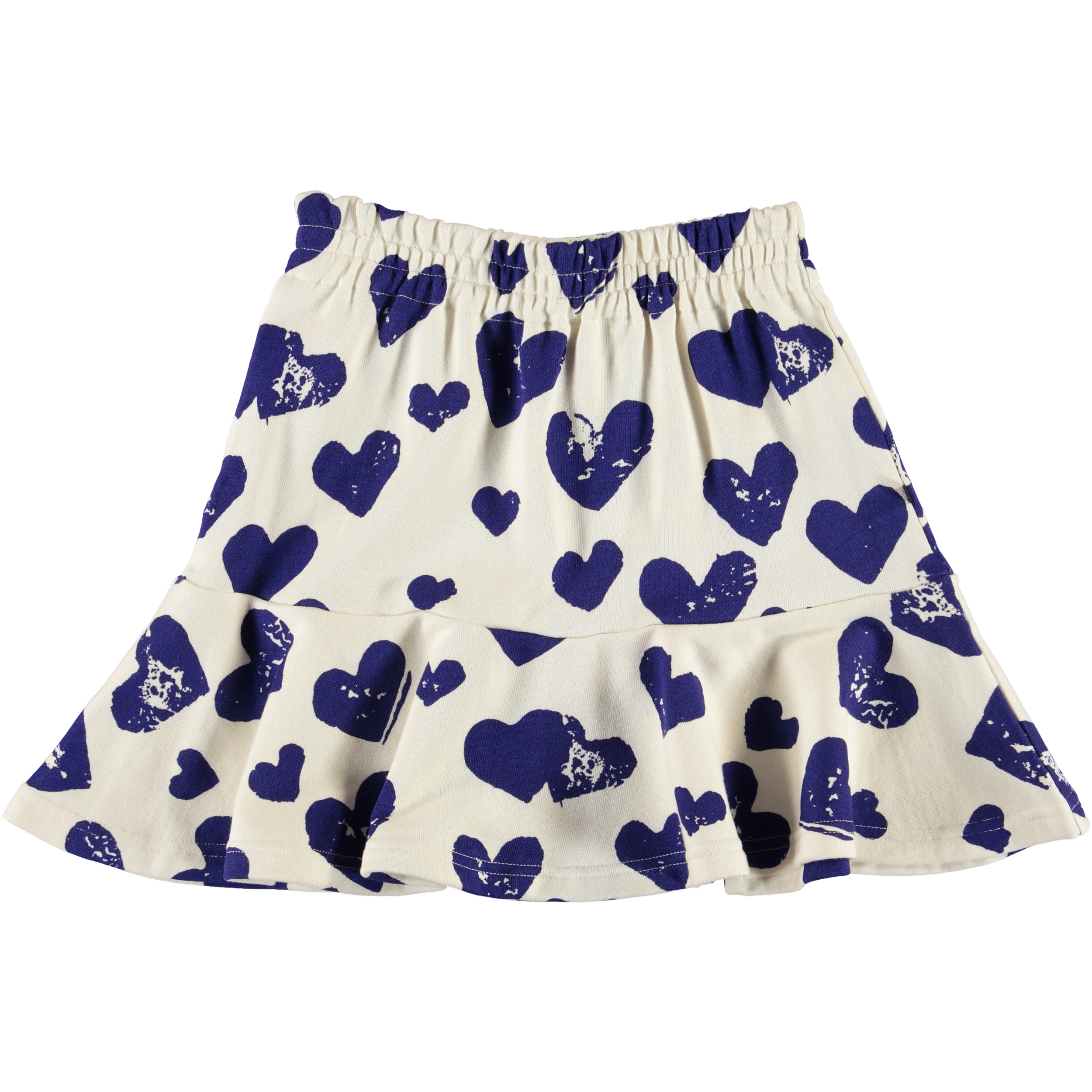 Det är fyllt med kärlek och blå hjärtan på kjolen Bliss. Kjolen har peplum volang nedtill.