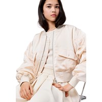 Off-white, sportig kjol med breda veck runtom, vilket ger kjolen en härlig fyllighet och rörelse. Midjan har en elastisk kant, vilket gör kjolen bekväm att bära och lätt att ta på och av.