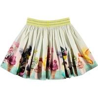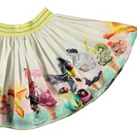 Brenda är en lätt bomullskjol med tryck av fåglar som äter olika glassar.