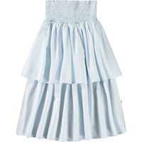 Ljusblå långkjol med en bred midja sydd med smockning, vilket gör den lätt att ta på och bekväm att bära. Kjolen har två lager, vilket ger den volym. Kombinera kjolen med en matchande topp i samma färg för en komplett uppsättning.