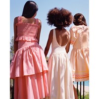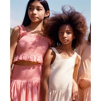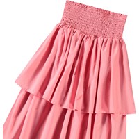 Ros långkjol med en bred midja sydd med smockning, vilket gör den lätt att ta på och bekväm att bära. Kjolen har två lager, vilket ger den volym. Kombinera kjolen med en matchande topp i samma färg för en komplett uppsättning.