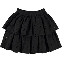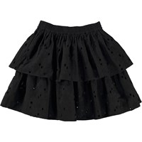Brigitte är en svart kjol i två lager med gummiband i midjan. Kjolen är i broderi anglaise och kan kombineras med toppen Ritza, för en komplett outfit.