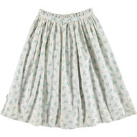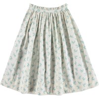 Brisa är en vit lång poplinkjol med små ljusblå hästar och fin volym.