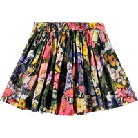 Färgglad kjol i bomullsviskos med blommigt mönster. Kjolen är knälång med en midjeresår som är fast framtill och elastisk baktill för att göra den lätt att ta på och bekväm att bära.